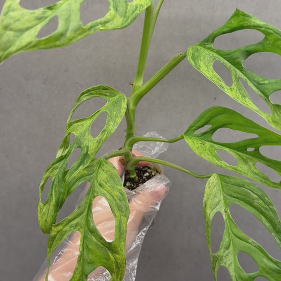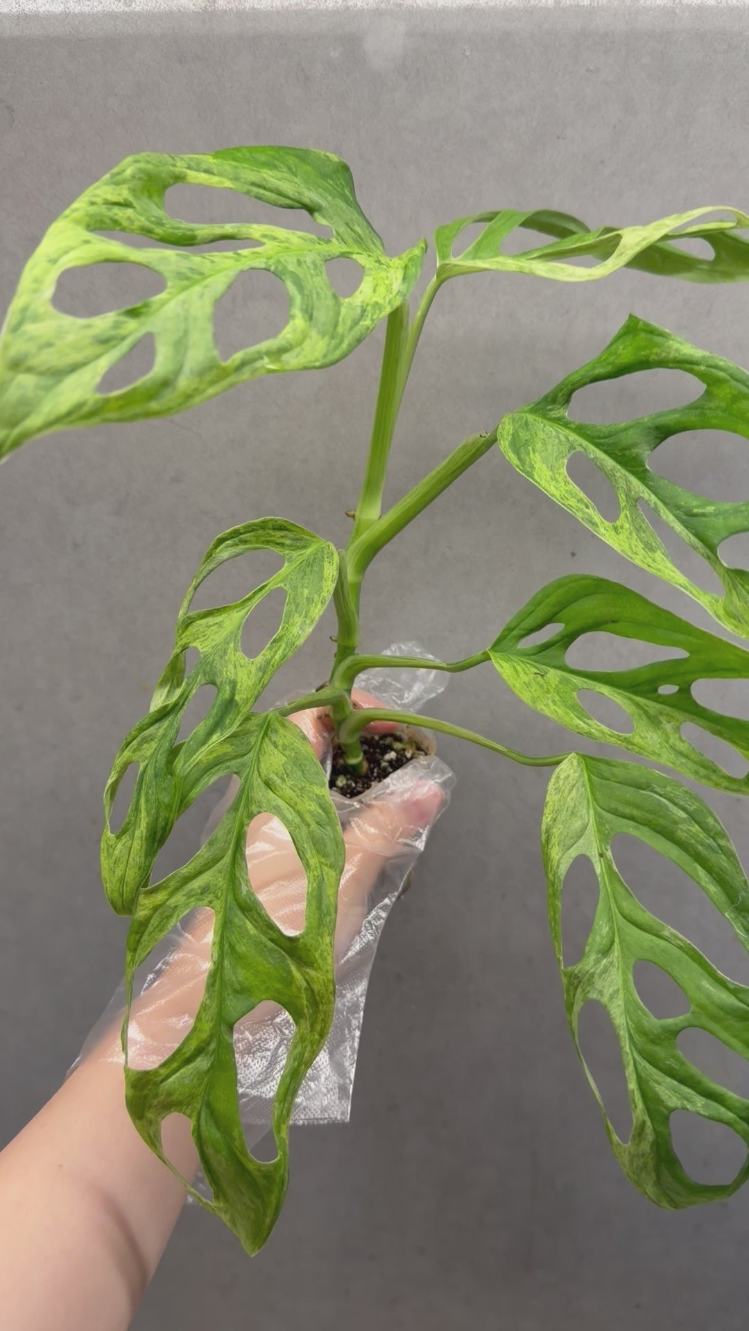 Beautiful mint-toned fenestrated leaves with soft variegation throughout the foliage.