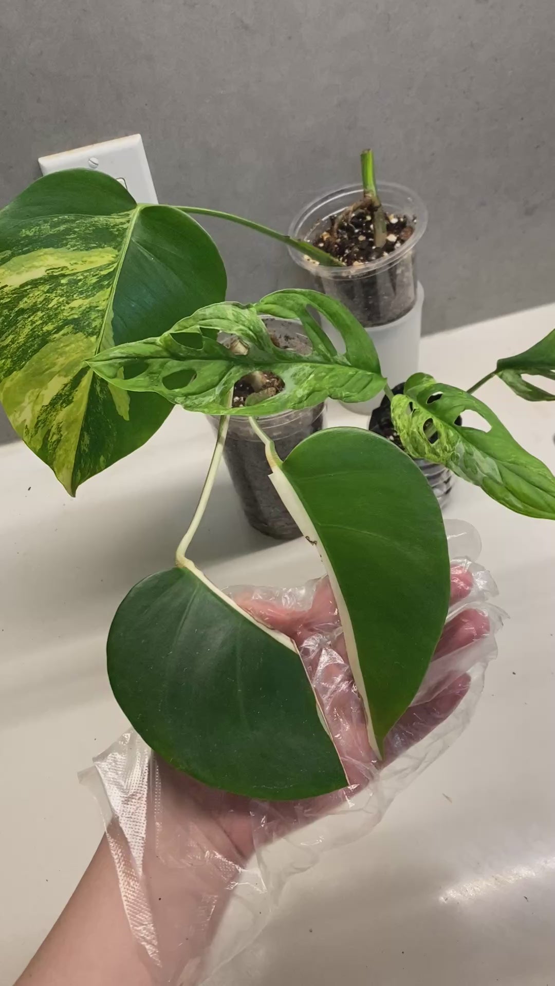 Monstera Albo Half Moon (2 leaves, base) + Monstera Aurea (base) + Monstera Adansonii Mint Variegated – Combo
