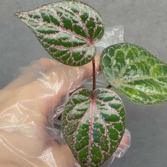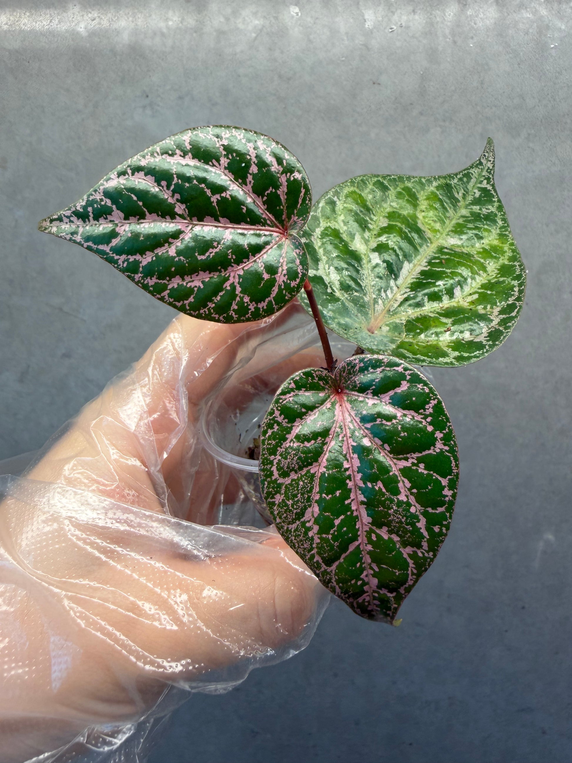 Beautiful climbing plant with striking pink-silver patterned leaves. Perfect choice for collectors who love unique foliage. Healthy, well-rooted plant.