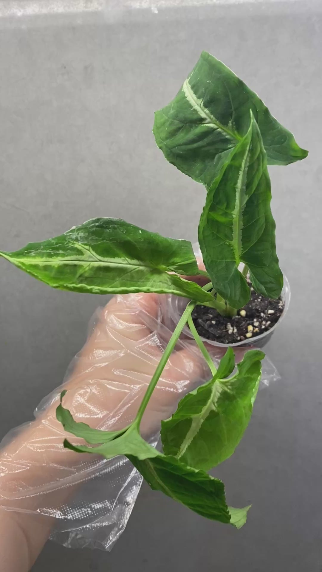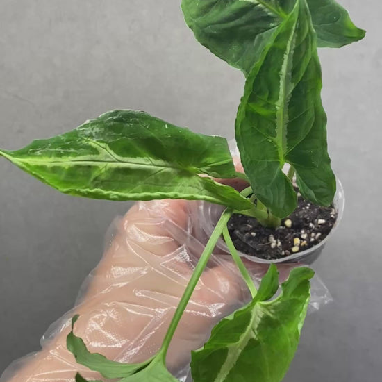 A beautiful velvet-leaf Syngonium with striking silver central veins and rich deep green foliage.